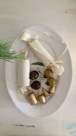 Lot de 4 boules en verre, accroche en métal vieilli.